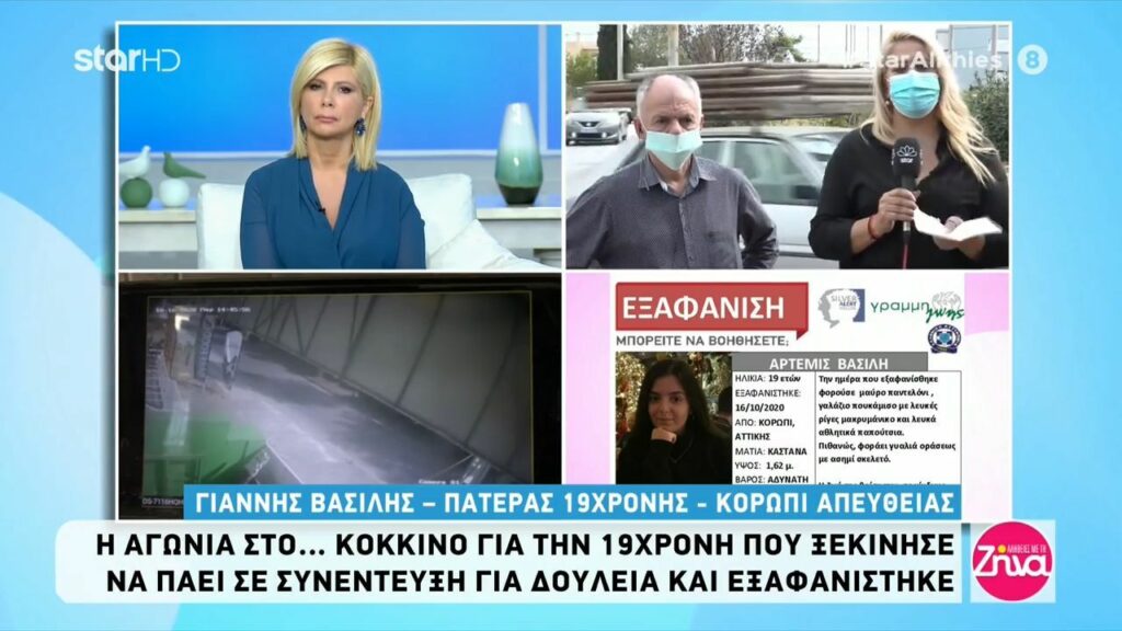 Στην εκπομπή «Αλήθειες με τη Ζήνα»  μίλησε ο  πατέρας της και όπως είπε η κόρη του  έφυγε από το σπίτι στις 14:40,  για να πάει σε γνωστό κατάστημα παιχνιδιών στην Παιανία και  να κάνει αίτηση για δουλειά.