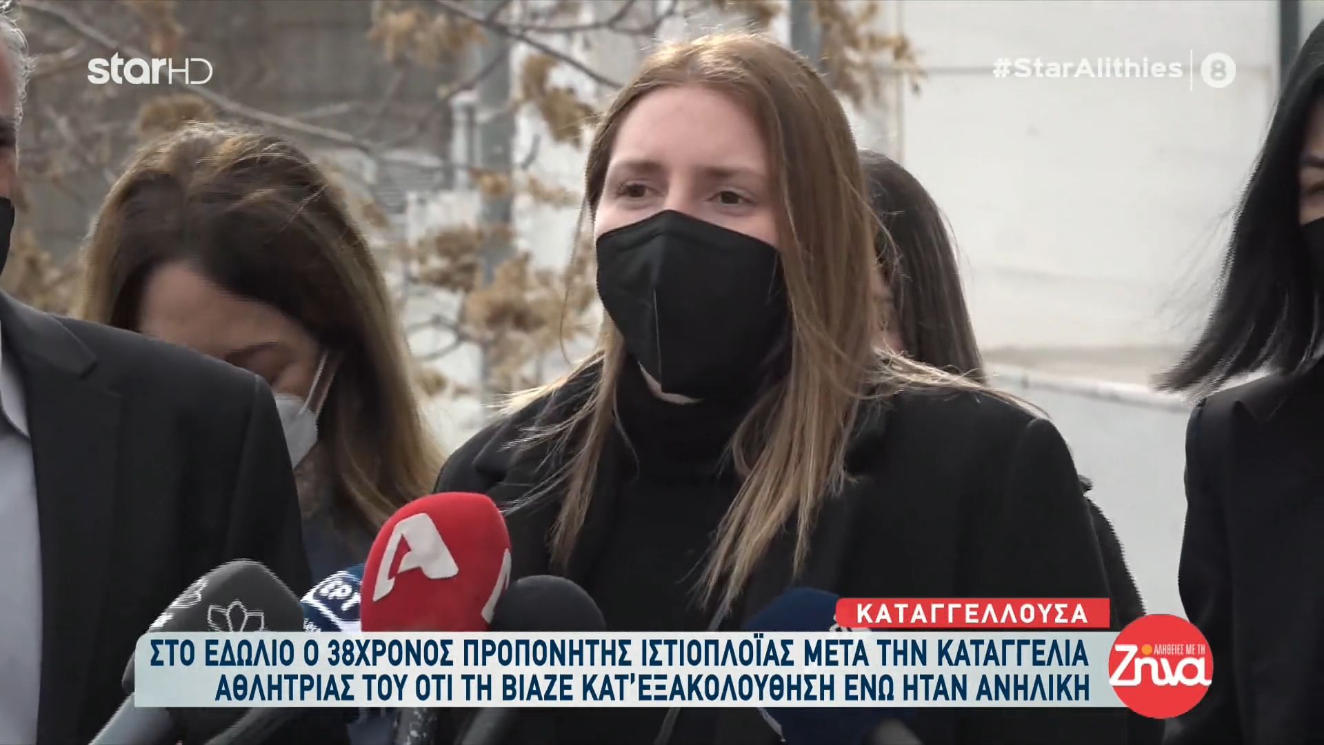 Η εκδίκαση της υπόθεσης ξεκίνησε με την παθούσα να φθάνει νωρίς το πρωί στο δικαστήριο, συνοδευόμενη από την οικογένειά της, τους γονείς και την αδελφή της, που προσήλθαν πιασμένοι χέρι-χέρι. Λίγο μετά προσήλθε και η κ. Σοφία Μπεκατώρου, η οποία στήριξε την αθλήτρια και της συμπαραστάθηκε, ώστε να καταγγείλει την υπόθεση στη Δικαιοσύνη.