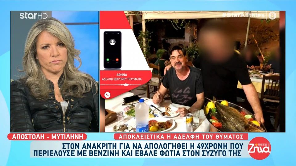 Μυτιλήνη-Απολογείται η 49χρονη που πυρπόλησε τον σύζυγο της: Θέλω να γίνει καλά ο αδελφός μου. Όταν τον είδα στο νοσοκομεία τσίριζα….