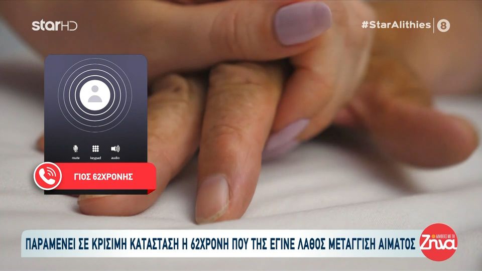 Νοσηλεύτρια στο Τζάνειο κατηγορείται πως έβαλε λάθος ομάδα αίματος σε 62χρονη και την έστειλε στην εντατική-Ξεσπά ο γιος της: Οι γιατροί μας είπαν πως είναι πολύ δύσκολα. Ο διευθυντής της ΜΕΘ μου είπε…