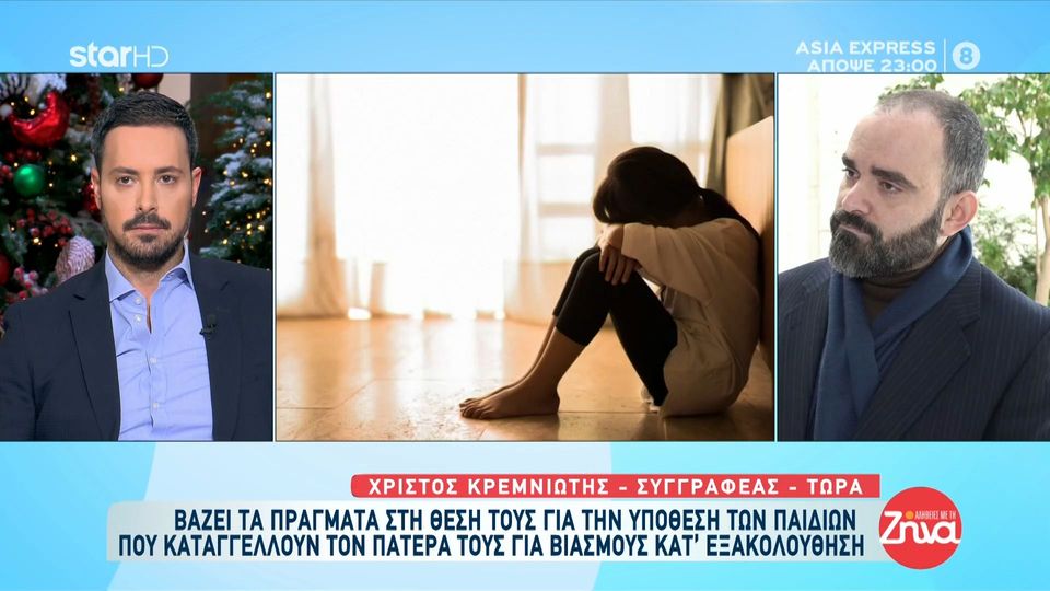 Ζωντανά στην εκπομπή “Aλήθειες με τη Ζήνα” μίλησε το μεσημέρι της Παρασκευής, ο συγγραφέας Χρίστος Κρεμνιώτης., ο άνθρωπος που στέκεται στο πλευρό των δύο παιδιών στα Πετράλωνα, που καταγγέλλουν για βιασμό τον πατέρα τους, αλλά και φίλους του και συγγενικά τους πρόσωπα.