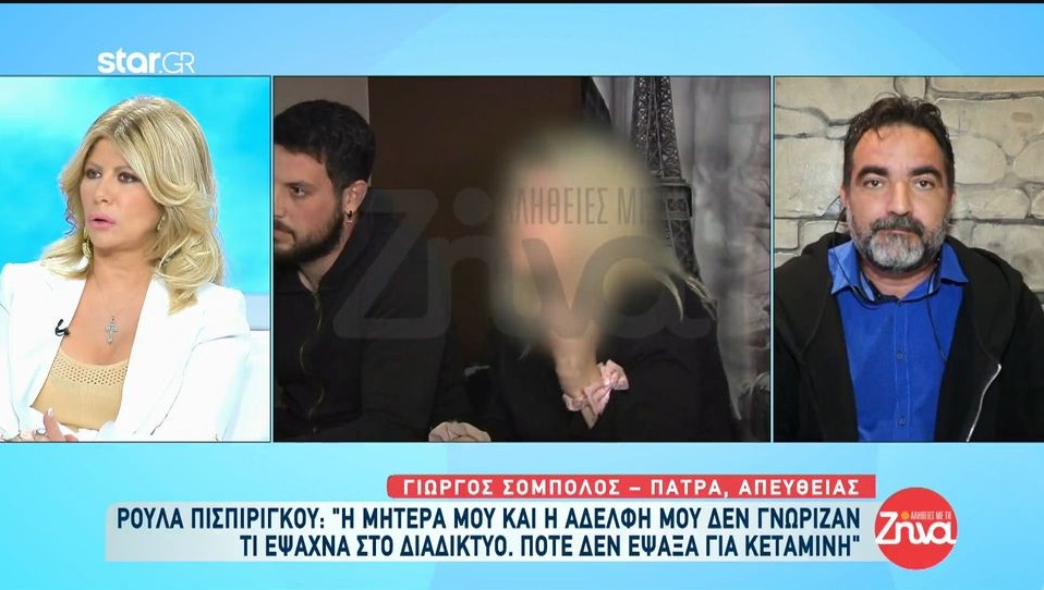 Όπως αποκάλυψε το μεσημέρι της Δευτέρας στην εκπομπή “Αλήθειες με τη Ζήνα” ο Γιώργος Σόμπολος, σε συνομιλία που είχε με την προφυλακισμένη Ρούλα Πισπιρίγκου, η 33χρονη του είπε πως δεν έψαξε ποτέ για κεταμίνη στο διαδίκτυο αλλά και πως ούτε η μητέρα, ούτε και η αδελφή της ήξεραν τι αναζητούσε.