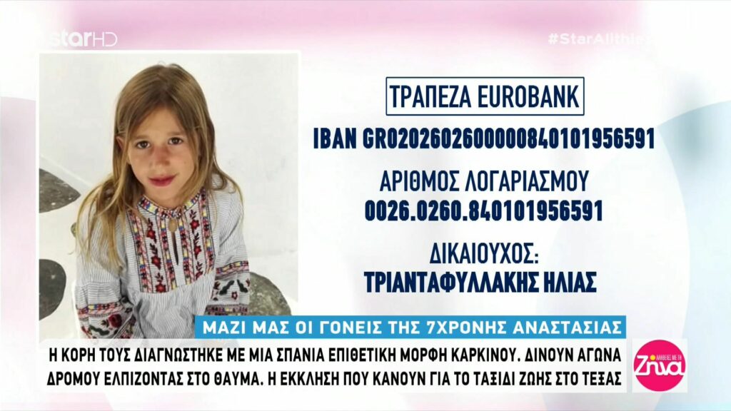 Η μονάκριβη  7χρονη κορούλα τους διαγνώσθηκε σε μια σπάνια επιθετική μορφή καρκίνου και πλέον δίνουν αγώνα δρόμου, ενάντια σε όλες τις ιατρικές εκτιμήσεις και τον χρόνο, ελπίζοντας σε ένα θαύμα.