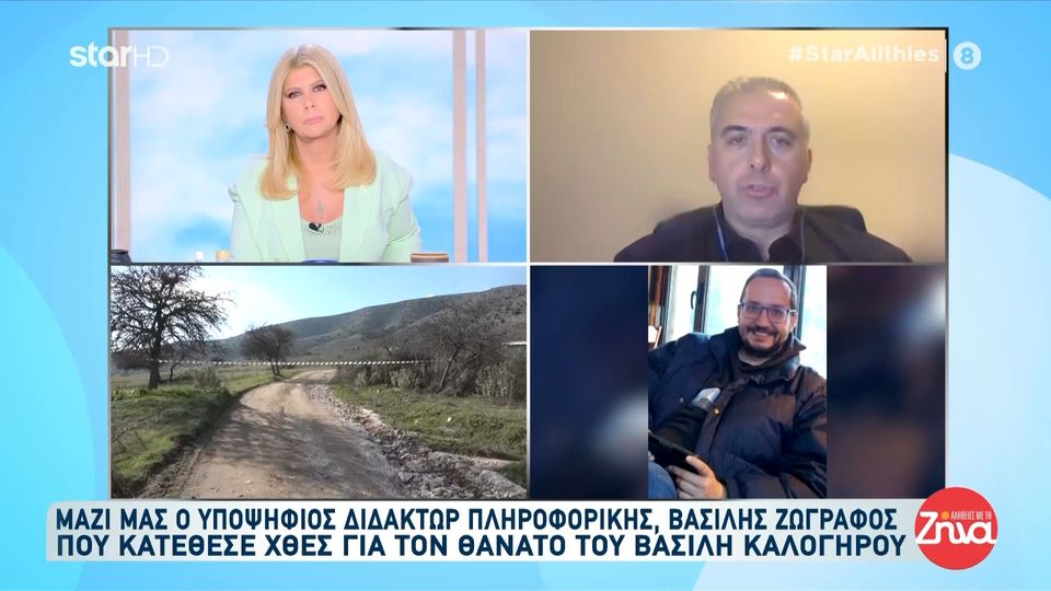 Το μεσημέρι της Παρασκευής ο υποψήφιος διδάκτωρ πληροφορικής, Βασίλης Ζωγράφος, που κατέθεσε για την υπόθεση του Βασίλη Καλογήρου, μίλησε στην εκπομπή «Αλήθειες με τη Ζήνα».