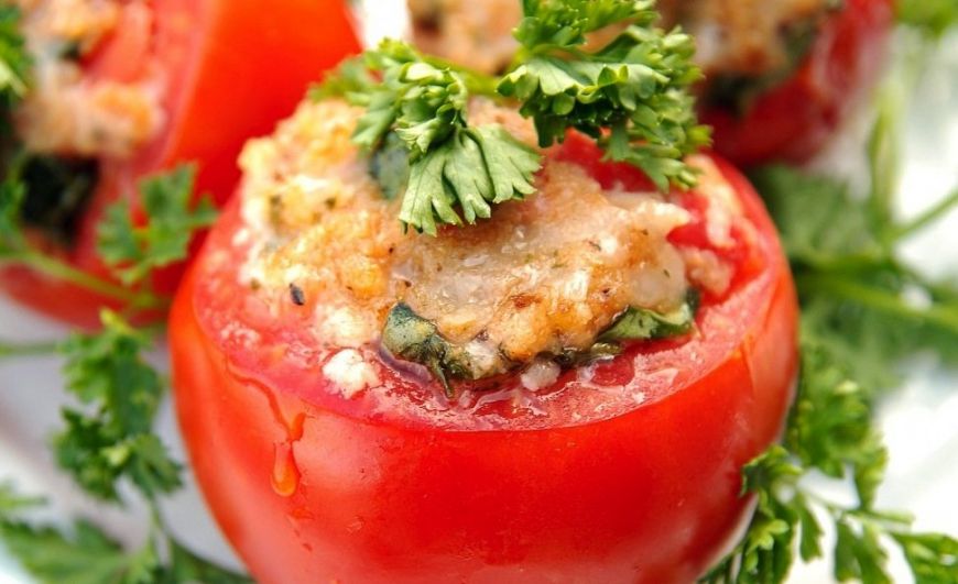 Αδειάζουμε τις ντομάτες από τη σάρκα τους που την κρατάμε στην άκρη.
