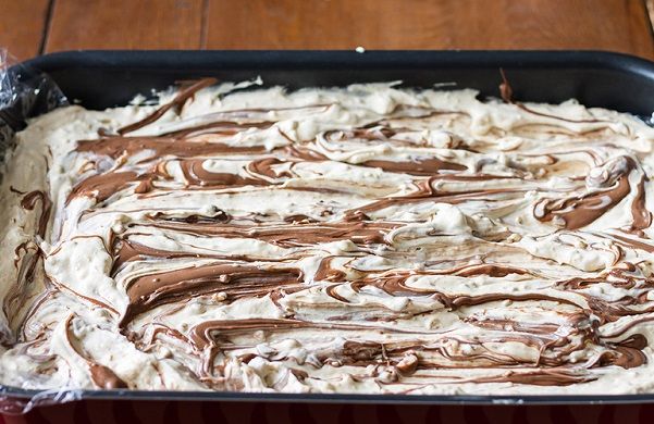 Απλώνουμε το μείγμα του παγωτού.