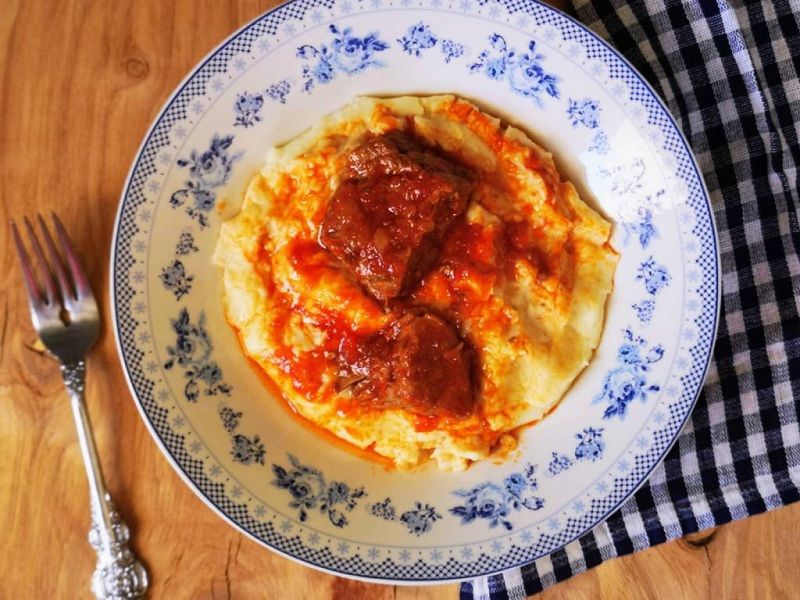 Μαμαδίστικος πουρές πατάτας με κοκκινιστό μοσχαράκι που μυρίζει νοστιμιά, μα πάνω απ’ όλα φροντίδα και αγάπη της μανούλας μας…