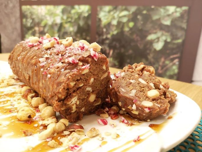 Πασπαλίζουμε ξηρούς καρπούς ή ζαχαρωμένα φρούτα ή κόβουμε φρέσκα φρούτα επάνω στον κορμό για μία πιο ανοιξιάτικη εκδοχή.