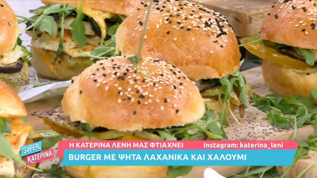 Burger με ψητά λαχανικά και χαλούμι από την Κατερίνα Λένη
