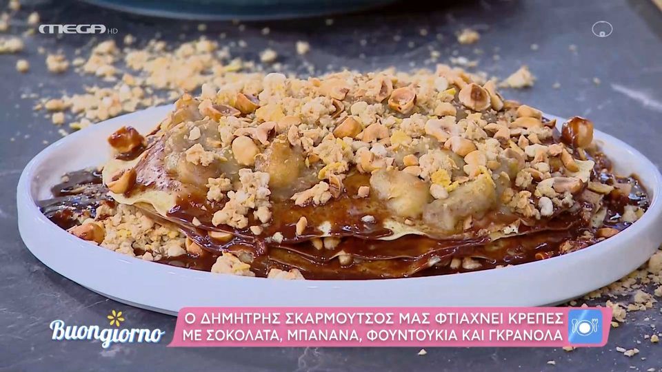 Κρέπες με σοκολάτα, μπανάνα, φουντούκια και γκρανόλα