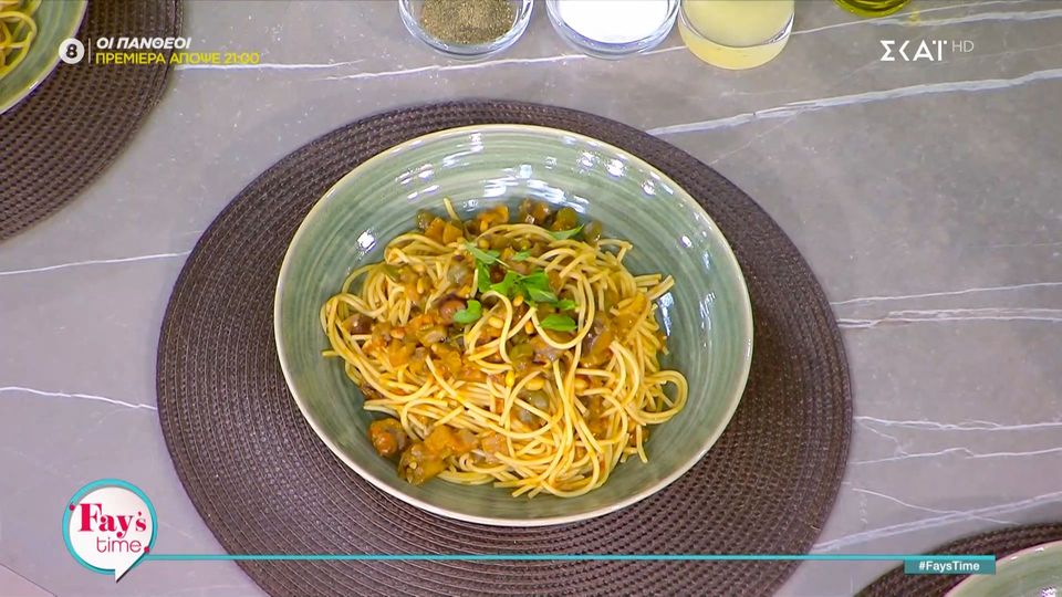 Ο Δημήτρης Σκαρμούτσος μας φτιάχνει σπαγγέτι καπονάτα