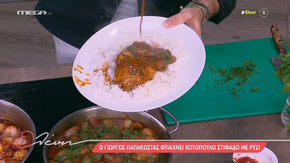 Μία λαχταριστή συνταγή, κοτόπουλο στιφάδο με ρύζι, ετοίμασε ο σεφ στην κουζίνα της εκπομπής «Ελένη».