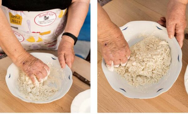 Η κ. Ευαγγελία Συκιανάκη από τη Νέα Πραισό Λασιθίου και η κ. Ευρυδίκη Χρυσουλάκη επίσης από τη Σητεία μας δείχνουν βήμα βήμα πως να φτιάξουμε ξεροτήγανα λασιθιώτικα.