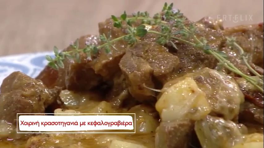 Χοιρινή κρασοτηγανιά με κεφαλογραβιέρα