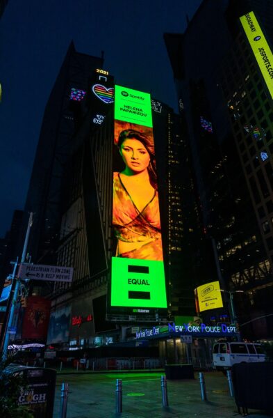 Η Έλενα Παπαρίζου, μια από τις εμπορικότερες και δημοφιλέστερες τραγουδίστριες στην Ελλάδα την τελευταία 20ετία, μας κάνει για ακόμα μια φορά περήφανους στο εξωτερικό! Αυτή τη φορά το “number one” της Ελλάδας βρέθηκε σε Billboard της περίφημης Times Square στη Νέα Υόρκη, ως ambassador στην global καμπάνια του Spotify “EQUAL” μαζί με άλλες 35 τραγουδίστριες από όλον τον κόσμο – μια καμπάνια που έχει ως σκοπό να ενισχύσει τη «φωνή» των γυναικών στη διεθνή δισκογραφία.