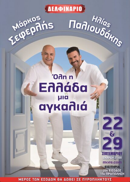 Στις 22 και 29 Σεπτεμβρίου ο Μάρκος Σεφερλής υποδέχεται τον Ηλία Παλιουδάκη στο θέατρο Δελφινάριο, σε μια ξεχωριστή μουσική γιορτή γεμάτη Ελλάδα!