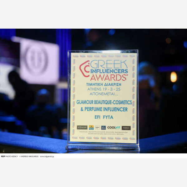 Σε ένα άκρως εορταστικό κλίμα, διεξήχθησαν τα 2nd “Greek Influencers Awards”, μία λαμπερή εκδήλωση, αφιερωμένη στους Έλληνες influencers. Ανάμεσα στους βραβευμένους ήταν και η δυναμική επιχειρηματίας Έφη Φυτά, που έχει αφήσει το αποτύπωμά της τόσο στον χώρο της μόδας όσο και στον χώρο των αρωμάτων. Η μεγάλη της αγάπη για τον τομέα της ομορφιάς την οδήγησε να δημιουργήσει την πλέον επιτυχημένη αλυσίδα αρωμάτων πολυτελείας, “Glamour Beautique”. Το βραβείο της απένειμε η καλή της φίλη, Ζήνα Κουτσελίνη, που την συνεχάρη για την συνεχή πορεία της και την αγωνιστικότητα της ως γυναίκα – επιχειρηματίας.