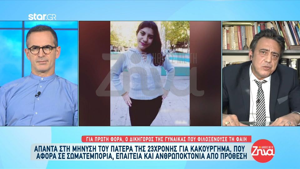 Για πρώτη φορά ο Γρ. Μαστορογιαννάκης, ο δικηγόρος της γυναίκας που φιλοξενούσε τη Φαίη, απαντά στη μήνυση του πατέρα της 23χρονης για κακούργημα, που αφορά σε σωματεμπορία, επαιτεια και ανθρωποκτονία από πρόθεση.