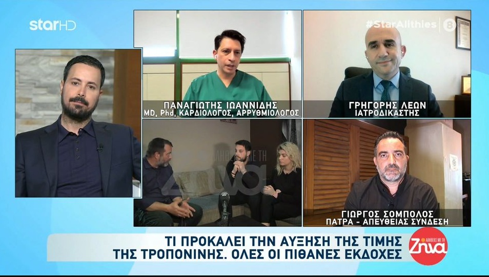 Στην εκπομπή το μεσημέρι της Τετάρτης μίλησε σε ζωντανή σύνδεση ο κύριος Παναγιώτης Ιωαννίδης, Md, Phd καρδιολόγος-αρρυθμιολόγος, αλλά και ο ιατροδικαστής Γρηγόρης Λέων και απάντησαν σε όλα τα ερωτηματικά που προκαλεί η ανακάλυψη της υπερβολικής ποσότητας τροπονίνης στο κοριτσάκι.