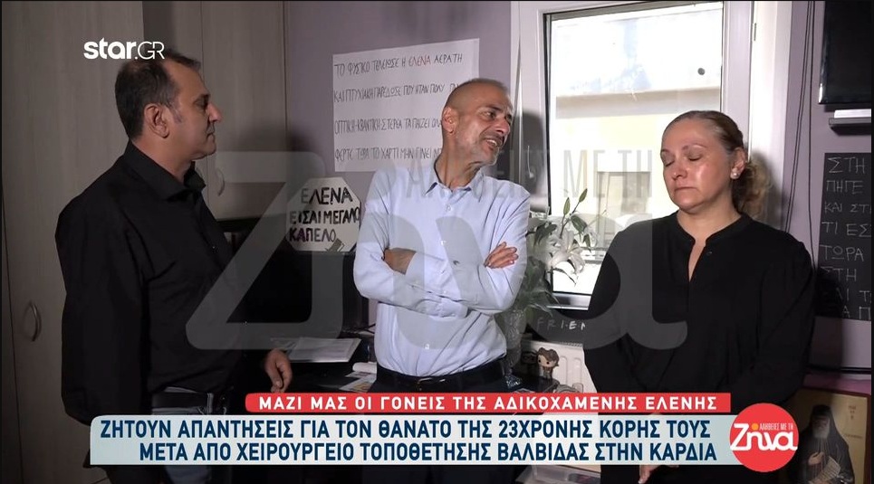 Ζήτησαν εισαγγελική παρέμβαση για να μάθουν γιατί πέθανε το παιδί τους. Ο Βασίλης και η Φωτεινή είναι οι γονείς της 23χρονης Ελένης που έφυγε από τη ζωή τον περασμένο Αύγουστο έπειτα από μια επέμβαση ρουτίνας στην καρδιά της.