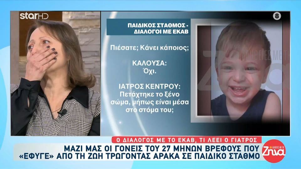 H εκπομπή Αλήθειες με τη Ζήνα και η Ρούλα Κουσκουρή παρουσίασαν για πρώτη φορά τον ηχητικό διάλογο της βρεφονηπιαγωγού με την τηλεφωνήτρια του Ε.Κ.Α.Β και τον γιατρό κέντρου την μοιραία ημέρα