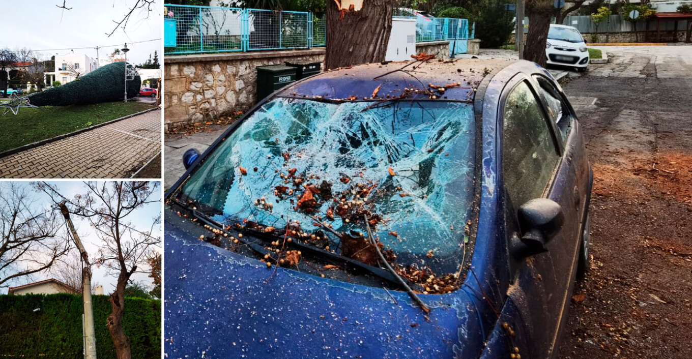 Ισχυρό μπουρίνι έπληξε την Αττική- Κομμένα δέντρα, σπασμένες κολώνες, ζημιές σε αυτοκίνητα – Καταστροφές σε Πύργο Ηλείας, Εύβοια, Πάτρα- Ο καιρός σήμερα
