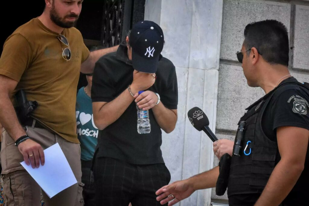 Το ζευγάρι έφτασε στο Δικαστήριο Τρίπολης με ένα περιπολικό και δεν θέλησαν να κάνουν καμία δήλωση για την δολοφονία στην Αρκαδία, ενώ είχαν καλυμμένα τα πρόσωπά τους με καπέλα και μάσκες.