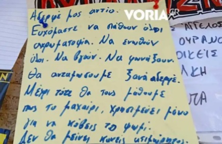 Οι φίλοι του 19χρονου τοποθέτησαν στο σημείο που δολοφονήθηκε ο Άλκης ένα σημείωμα και ζητούν να μην μείνει κανείς ατιμώρητος για τη δολοφονία του