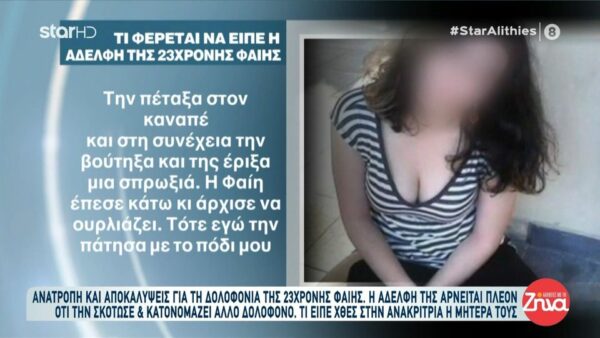 Ανατροπή και αποκαλύψεις για τη δολοφονία της 23χρονη Φαίης – Η αδερφή της αρνείται τις κατηγορίες και κατονομάζει τον δολοφόνο