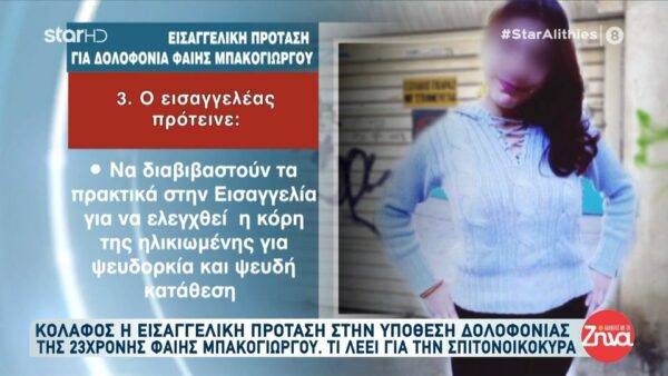 Καταπέλτης η εισαγγελική πρόταση για την δολοφονία της 23χρονης Φαίης Μπακογιώργου