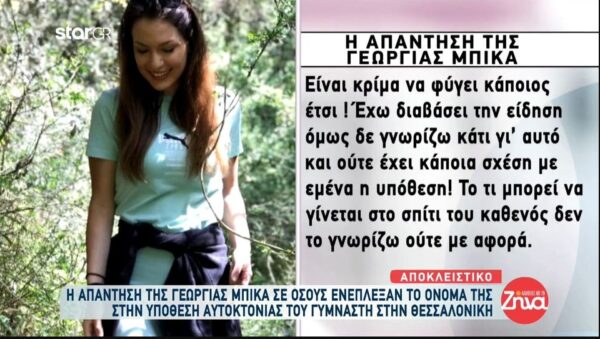 Η απάντηση της Γεωργίας Μπίκα σε όσους ενέπλεξαν το όνομά της στην υπόθεση αυτοκτονίας του γυμναστή:Φυσικά και συνδέουν εμένα, όμως…