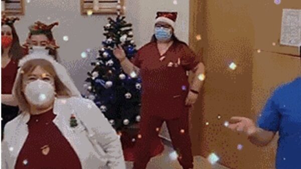 Με ένα εντυπωσιακό χορευτικό φορώντας τις στολές τους γιατροί και νοσηλευτές έστειλαν τις ευχές τους.