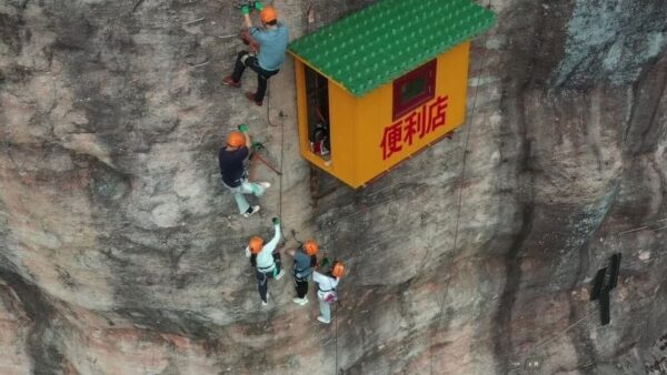 Το πιο δυσπρόσιτο ψιλικατζίδικο του κόσμου κρέμεται σε έναν απότομο βράχο, 120 μέτρα από το έδαφος