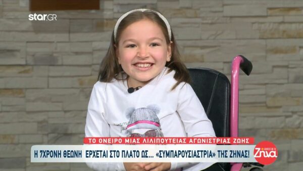 Η 7χρονη υπέροχη Θεώνη που πάσχει από νωτιαία μυϊκή ατροφία έγινε «συμπαρουσιάστρια» της Ζήνας Κουτσελίνη και “έκλεψε” την παράσταση!