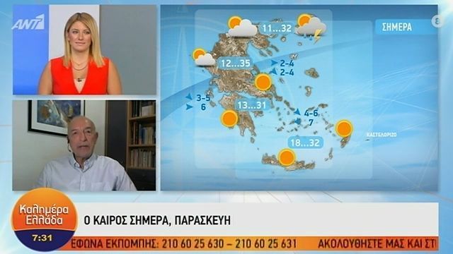 Ο Τάσος Αρνιακός παρουσιάζει τον καιρό στην εκπομπή «Καλημέρα Ελλάδα».