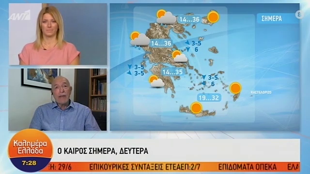 Ο Τάσος Αρνιακός παρουσιάζει τον καιρό στην εκπομπή «Καλημέρα Ελλάδα».