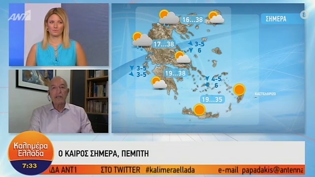 Ο Τάσος Αρνιακός παρουσιάζει τον καιρό στην εκπομπή «Καλημέρα Ελλάδα».