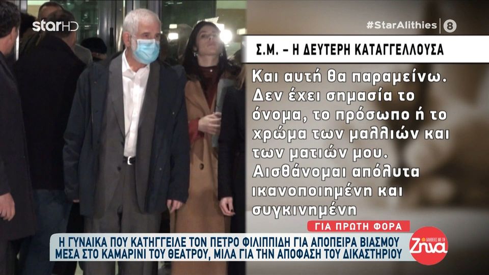 Για πρώτη φορά η γυναίκα που κατήγγειλε τον Πέτρο Φιλιππίδη για απόπειρα βιασμού μέσα στο καμαρίνι του θεάτρου, μιλά για την απόφαση του δικαστηρίου, την ποινή των 8 ετών κάθειρξης, που επέβαλλε στον ηθοποιό και τη δική της αλήθεια για την υπόθεση που συγκλόνισε το πανελλήνιο!