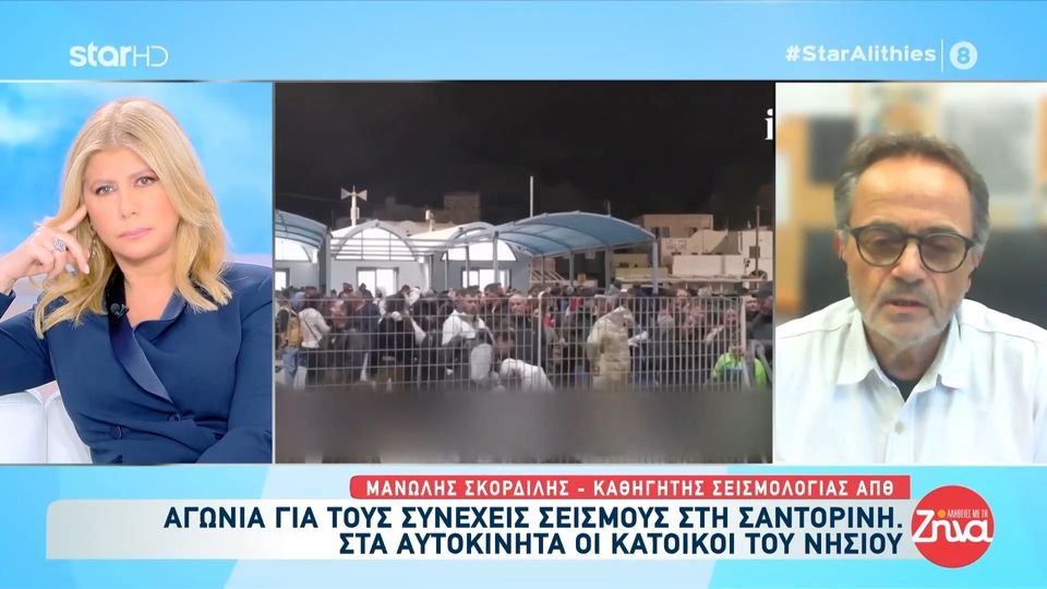 Ο καθηγητής Σεισμολογίας του ΑΠΘ, Μανώλης Σκορδίλης, το μεσημέρι της Δευτέρας μίλησε σε ζωντανή σύνδεση στις «Αλήθειες με τη Ζήνα» για τους συνεχόμενους σεισμούς στη Σαντορίνη και για τους κατοίκους που τρέπονται σε φυγή.