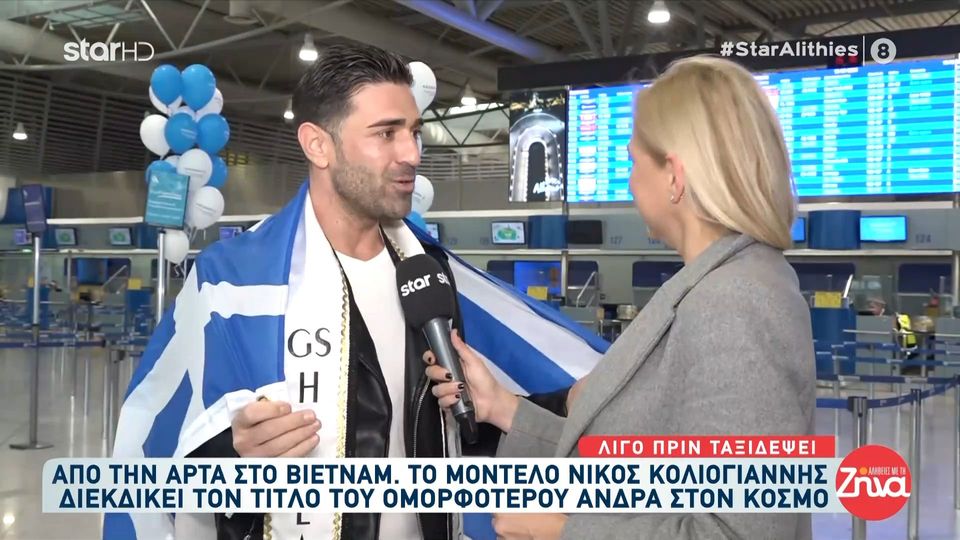 Η κάμερα της εκπομπής Αλήθειες με τη Ζήνα και η Ευδοκία Μύτιλη τον συνάντησαν στο αεροδρόμιο, όπου με την ελληνική σημαία αγκαλιά θέλει να κάνει υπερήφανους τους συμπατριώτες του.