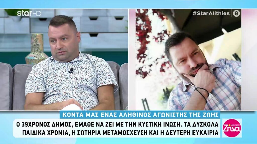 Ο 39χρονος  Δήμος  διηγήθηκε πώς έμαθε να ζει με την κυστική ίνωση, τα δύσκολα παιδικά του χρόνια, τον τρόπο που έμαθε την αλήθεια για την υγεία του σε ηλικία 18 ετών και τη μεταμόσχευση που ήρθε ως εκ θαύματος, δίνοντάς του μία δεύτερη ευκαιρία για τη ζωή!