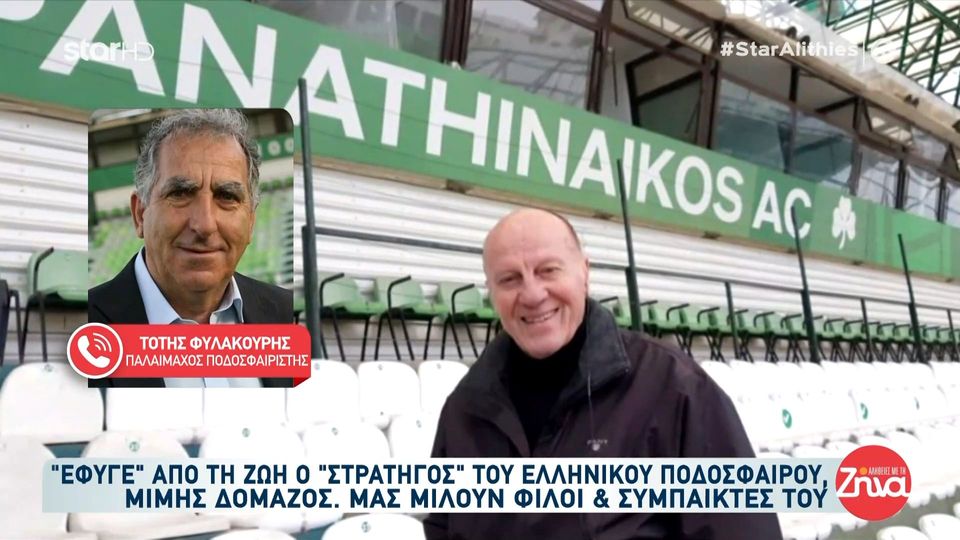 “Ο γνωστός παλαίμαχος ποδοσφαιριστής Μίμης Δομάζος παρά την εξάντληση των θεραπευτικών παρεμβάσεων κατέληξε σήμερα Παρασκευή 24-01-2025 και ώρα 10:20 π.μ. λόγω πολυοργανικής ανεπάρκειας.