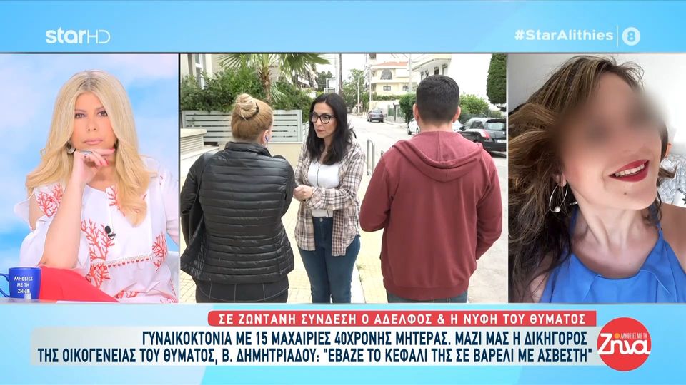 Σοκάρουν οι  τελευταίες πληροφορίες για τη γυναικτονία στο Μενίδι της 40χρονης μητέρας από τον εν διαστάσει σύζυγό της, ο οποίος της κατάφερε 15 μαχαιριές. Ο αδελφός και η νύφη του θύματος και η δικηγόρος της οικογένειας της 40χρονης, Βούλα Δημητριάδη μίλησαν  στην εκπομπή «Αλήθειες με τη Ζήνα».