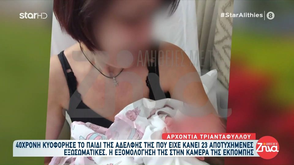 Συγκλονίζει στην εκπομπή Αλήθειες με τη Ζήνα η εξομολόγηση της 40χρονης Αρχοντίας Τριανταφύλλου, που κυοφόρησε το παιδί της αδελφής της που είχε κάνει 23 αποτυχημένες εξωσωματικές αλλά και τα συγκινητικά λόγια της βιολογικής μητέρας του παιδιού.